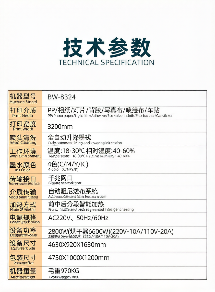 The 3.2M large format printer is a high-performance digital printing machine designed for advertising and wide-format graphic production. With a 3.2 meter printing width, it supports high-resolution printing for large banners, posters, and advertising materials.